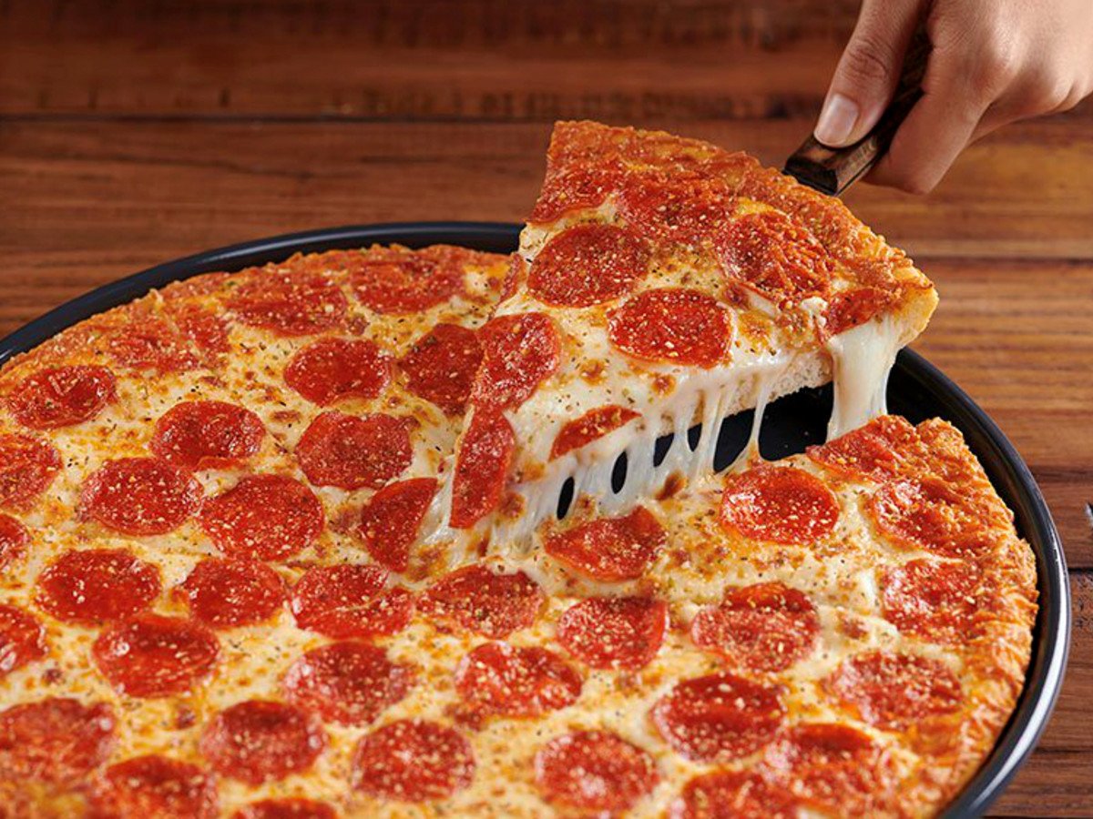 un poquito grande Si te gustan las pizzas con TODO, esta es para ti.Pepperoni, carne, champiñones, cebolla, pimientos y aceitunas.Una explosión de sabor en cada rebanada